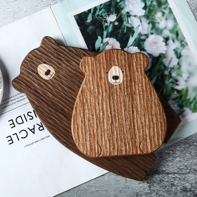 Pizza Bread Plate Cute Bear Tray Wood Board Bear Tray Walnut Chopping Board Table Decor Wooden Plate Coaster Kitchen Accessories